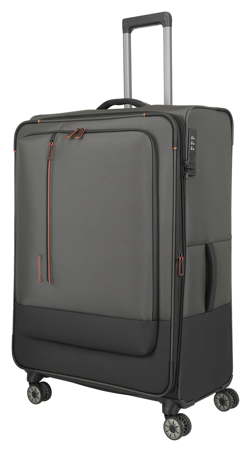 Extra velký textilní kufr na čtyřech kolečkách s vodoodpudivým dnem, TSA zámkem, expandérem a integrovanou jmenovkou vyrobený z recyklovaného polyesteru.