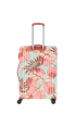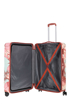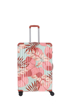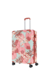 Čtyřkolečkový skořepinový kufr z tvrdého ABS plastu s květinovým potiskem vybavený TSA zámkem.