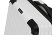 Čtyřkolečkový skořepinový kufr z tvrdého ABS plastu v trendy bílé barvě vybavený TSA zámkem.