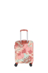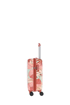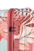 Čtyřkolečkový skořepinový kufr z tvrdého ABS plastu s květinovým potiskem vybavený kombinačním zámkem.