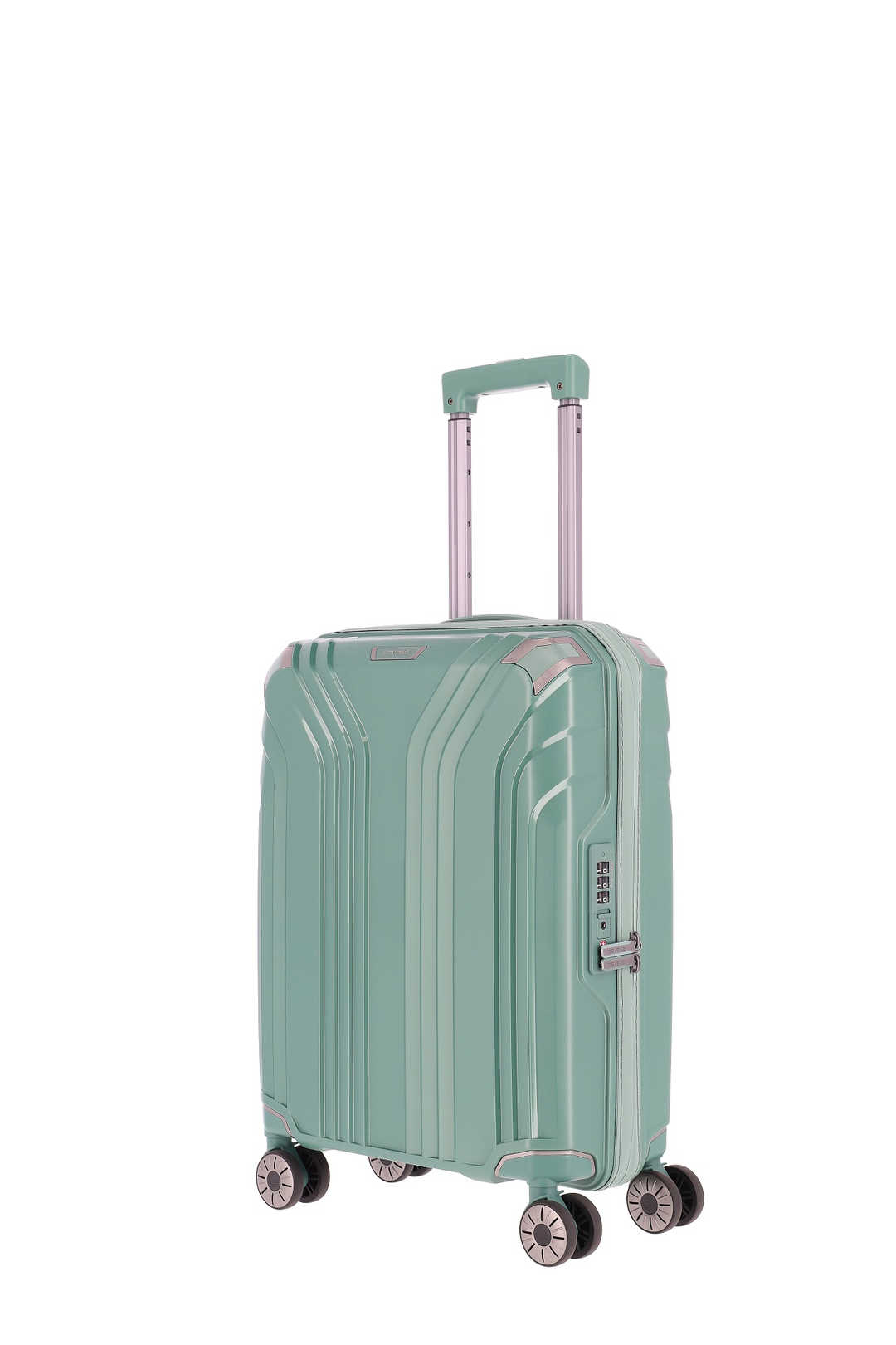 Luxusní skořepinový palubní kufr na čtyřech kolečkách s voděodolným zipem a exkluzivním TSA zámkem vyrobený z extrémně odolného polypropylenu.
