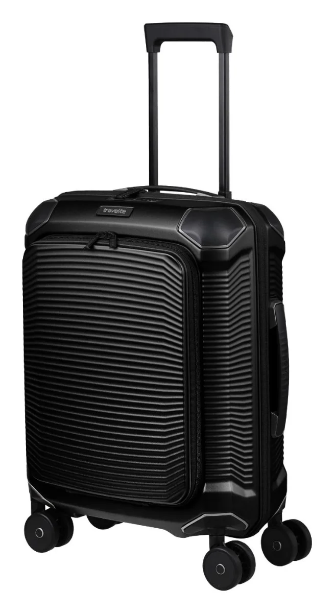 Kabinový kufr s přední kapsou na notebook. Odolný polykarbonát se zesílenými rohy, TSA zámek a 4 kvalitní kolečka pro pohodlné cestování.
