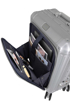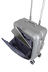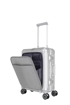 Extra odolný čtyřkolečkový rámový palubní kufr z kvalitního hliníku se zavíráním na klapky s integrovaným TSA zámkem a textilní přední kapsou na notebook.