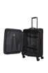 Střední textilní kufr na čtyřech kolečkách vybavený přední kapsou na zip, integrovaným TSA zámkem a expandérem.