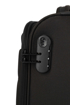 Textilní palubní kufr na čtyřech kolečkách vybavený přední kapsou na zip a integrovaným kombinačním zámkem.