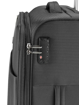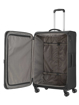 Odlehčený textilní cestovní kufr z odolného polyesteru na čtyřech kolečkách vybavený integrovaným TSA zámkem a expandérem.