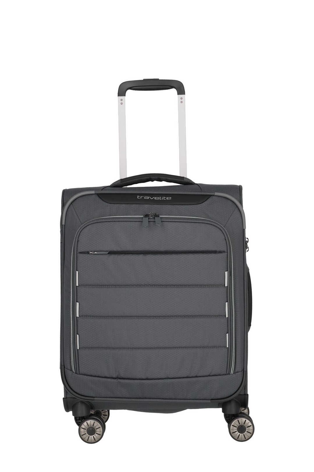 Extra lehký textilní palubní kufr na čtyřech kolečkách s integrovaným TSA zámkem vyrobený z recyklovaného polyesteru.