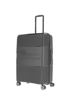 Čtyřkolečkový skořepinový kufr z extra odolného plastu s integrovaným TSA zámkem.