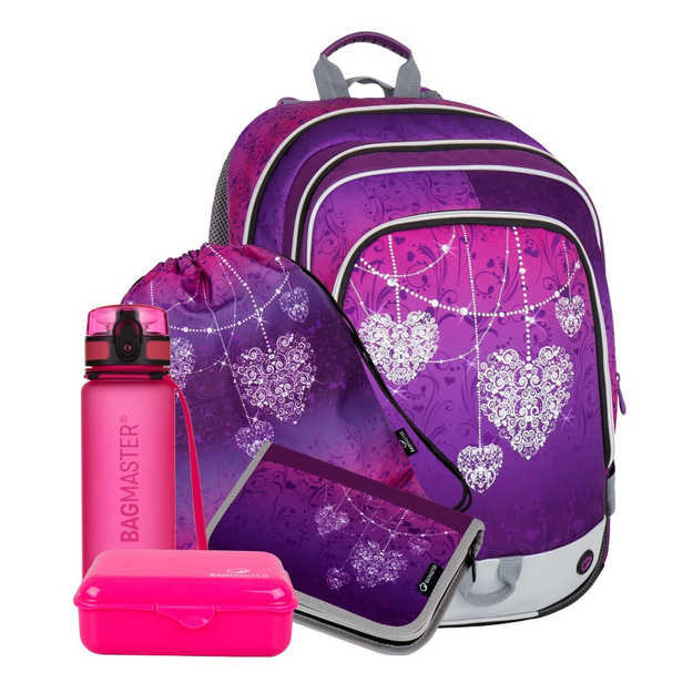 Školní Velký SET ALFA 7 A se skládá ze 5 produktů značky Bagmaster. Školní batoh ALFA 7 A Jednochlopňový školní penál ALFA 7 A Školní sáček na přezůvky ALFA 7 A Certifikovaná krabička na svačinu LUNCH BOX 013 A Certifikovaná lahvička na pití 0,5 l BOTTLE 20 A Specifikace školního batohu ALFA: Tříkomorový školní batoh - hmotnost jen 0,92 kg! 1 postranní síťované kapsička na gumu, vhodná na láhev, kapsa je kryta látkovou kapsou se zipem Ergonomicky tvarovaná záda, včetně lehkého hliníkového rámu pro podporu správného držení těla školáka Nastavitelný hrudní pás Nastavitelné ramenní popruhy, měkce polstrované Kapsa na penál nebo svačinu Organizér Polstrované dno s plastovými nožkami proti oděru dna V zadní části guma na desky Parametry Velky SET ALFA 7 A: Školní batoh ALFA 7 A, rozměry: 40 x 31 x 20 cm, hmotnost: 0,92 kg, Nosnost: 7 kg, Objem: 19 l Školní penál jednochlopňový CASE ALFA 7 A - rozměry: 20,5 x 13,5 x 4 cm; hmotnost: 0,16 kg, Nosnost: 1 kg (penály jsou vybaveny novým typem rozvrhu hodin. Budou expedovány vždy se setem samolepek, které si děti mohou kreativně lepit na rozvrh. Například místo matematiky si mohou nalepit pravítko apod.) Rozměry pytlíku na přezůvky SHOES ALFA 7 A : 38,5 x 31 cm; materiál 100% polyester Krabička na svačinu LUNCH BOX 013 A, nevhodné do myčky Láhev na pití 0,5 l BOTTLE 20 A, nevhodné do myčky