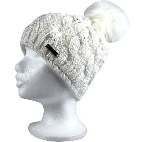 VOXX Čepice dámská pletená ASTRA s flitry a bambulí BÍLÁ