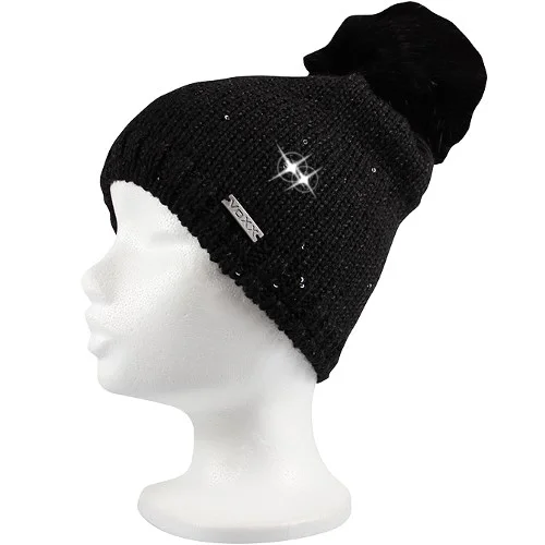 VOXX Čepice dámská pletená TWINGO s flitry a bambulí ČERNÁ