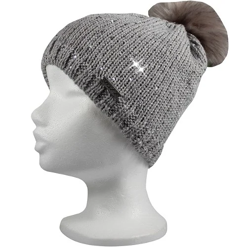 VOXX Čepice dámská pletená TWINGO s flitry a bambulí ŠEDÁ