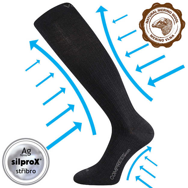 VOXX Podkolenky kompresní slabé z merino WOOLAX s ionty stříbra ČERNÉ