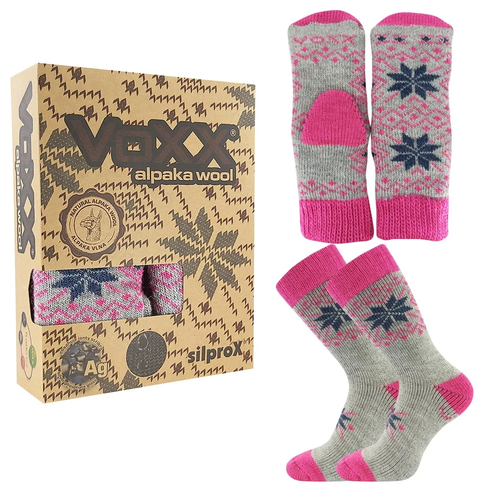 VOXX Sada zimních ponožek a pletených palčáků ALTA SET z merino vlny a alpaky ŠEDÉ