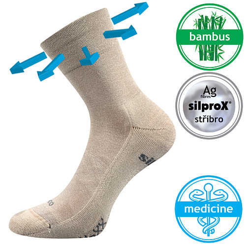 - dámské-pánské sportovní ponožky, extra vyztužené chodidlo proti opotřebení, zesílené froté chodidlo, řetízkovaná špice, speciální jemný nestahující lem, přirozená antibakteriální ochrana v materiálu bambus a antibakteriální ochrana ionty stříbra v materiálu silprox, teplotní třída: B