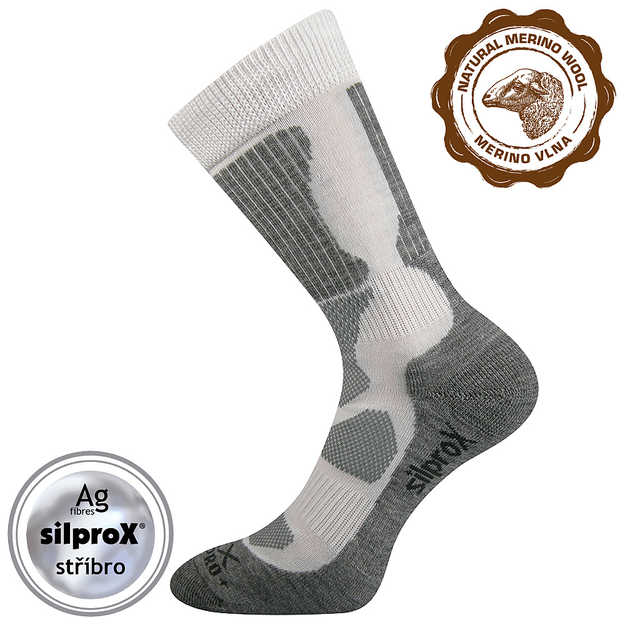 - dámské-pánské froté ponožky, polstrované zóny proti otlakům a puchýřům, anatomicky tvarováno, jemný svěr lemu, vysoká prodyšnost, antibakteriální ochrana materiálu silproX s ionty stříbra, maximální tepelný comfort díky merino vlně CLIMAYARN, teplotní třída: C