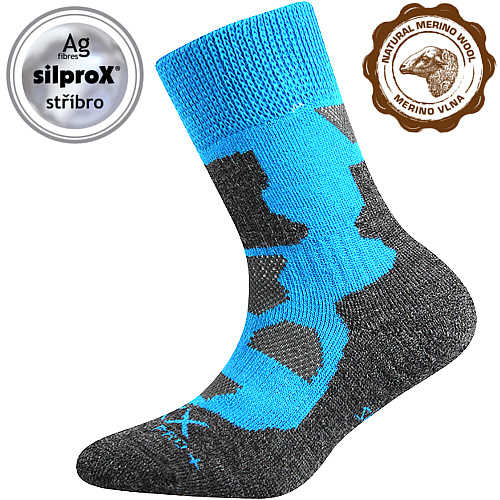 - dětské froté ponožky, polstrované zóny proti otlakům a puchýřům, jemný svěr lemu, vysoká prodyšnost, antibakteriální ochrana materiálu silproX s ionty stříbra, maximální tepelný comfort díky merino vlně CLIMAYARN, teplotní třída: C