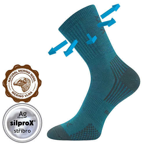Sportovní vlněné ponožky VoXX® OPTIMALIK pro kluky i holky mají speciální „medicine“ lem, který nestahuje a neškrtí. Díky vyztuženému chodidlu jsou opravdu odolné vůči opotřebení. Funkční ponožky jsou díky použitým materiálům antibakteriální - merino vlna je přirozeně antibakteriální a silproX® obsahuje ionty stříbra, které zabraňuje tvorbě zápachu. V teplotní třídě B jsou ideální do teplot od -5°C do +20°C.