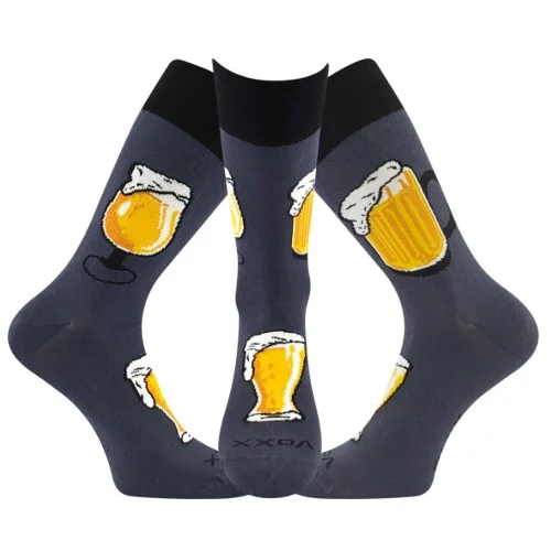 Vtipné pánské ponožky VoXX® PIVoXX jsou originální ponožky s pivními motivy. Bavlněné ponožky s elastanem jsou prodyšné a pohodlné po celý den i večer. Pro milovníky tohoto hořkého nápoje máme ke každému páru pivních ponožek jako dárek plechovku, do které si můžete své ponožky schovat. Klasické tenké ponožky jsou vhodné na celodenní nošení, ideálně do letních zahrádek, restaurací a hospůdek, kde budete za tento módní doplněk po zásluze pochváleni. V teplotní třídě A.
