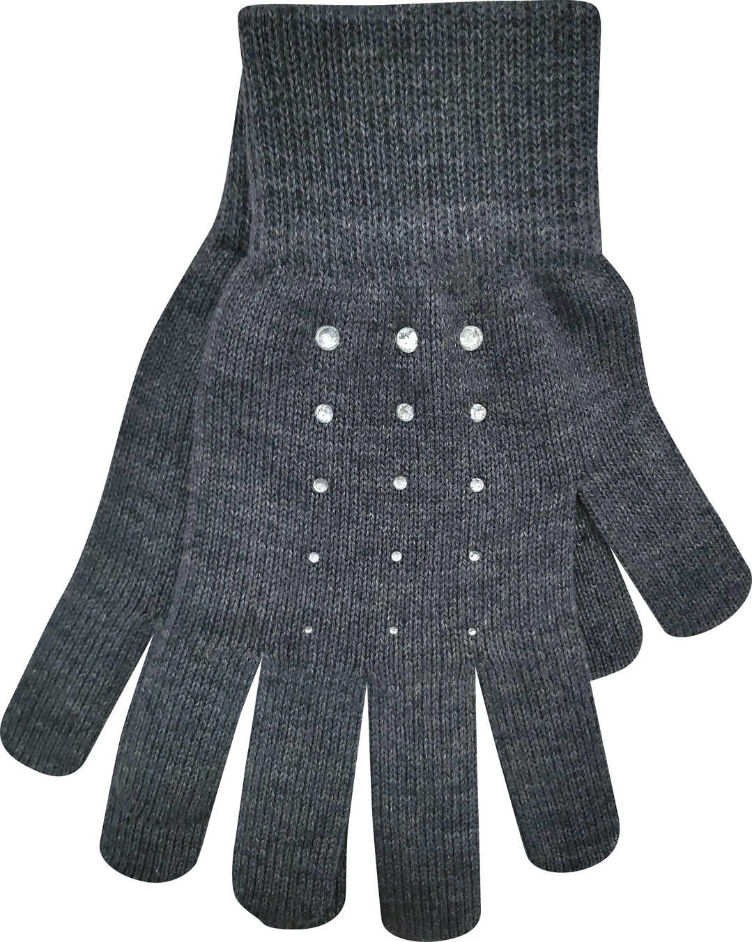 VOXX Rukavice dámské pletené LEAF s kamínky Swarovski ANTRACITOVÉ
