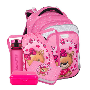 Bagmaster LUMI 24 H velký školní set pro prvňáčky – medvídek růžová 23 l